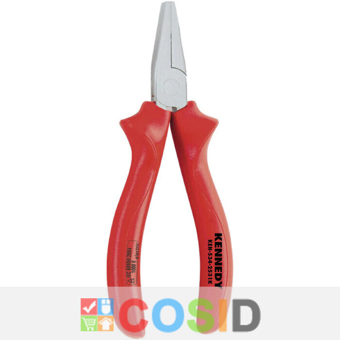 These flat nose pliers from Kennedy® feature multi-layer insulation to protect users against up to 1000 volts of electricity. Made from quality chrome-plated steel, they deliver a long product life and are a must-have for any electrician's toolkit. Features and Benefits • Serrated jaws provide strong gripping action • Multi-layer insulation protects against up to 1000 volts of electricity • Chrome-plated tool steel ensures a strong and durable product Standards • IEC 60900