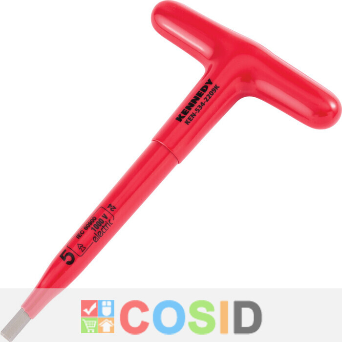 These heavy-duty T-Handle Wrenches from Kennedy® feature multi-layer insulation to protect users against up to 1000 volts of electricity. Features and Benefits • Size and safety information printed on the side for easy identification • Individually tested for safety • Reliable heavy-duty handle for excellent torque delivery Standards • IEC 60900