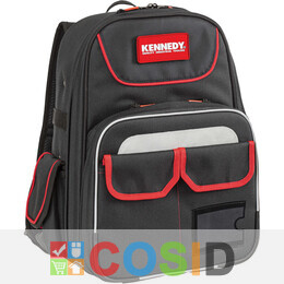 The Kennedy® Tool Backpack is a practical and durable solution for storing and transporting tools and work equipment with ease. Designed for comfort and convenience, it includes a padded handle, adjustable shoulder and belt straps, and extra back padding for enhanced support while on the move. The spacious main compartment includes a double-sided tool panel with padlockable zip closures for added security, while the middle compartment offers pouches for organising smaller components. Four rubber feet at the base help prevent floor damage, making it a reliable choice for professionals who need a secure and comfortable way to carry their tools. Features and Benefits • Middle compartment has pouches for smaller component storage with padlockable zip closures (padlocks sold separately) • Main compartment supplied with a double-sided tool panel with padlockable zip closures (padlocks sold separately) • Four rubber feet at the base protect flooring against damage • Extra padding at the back of the bag for user comfort when in motion