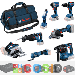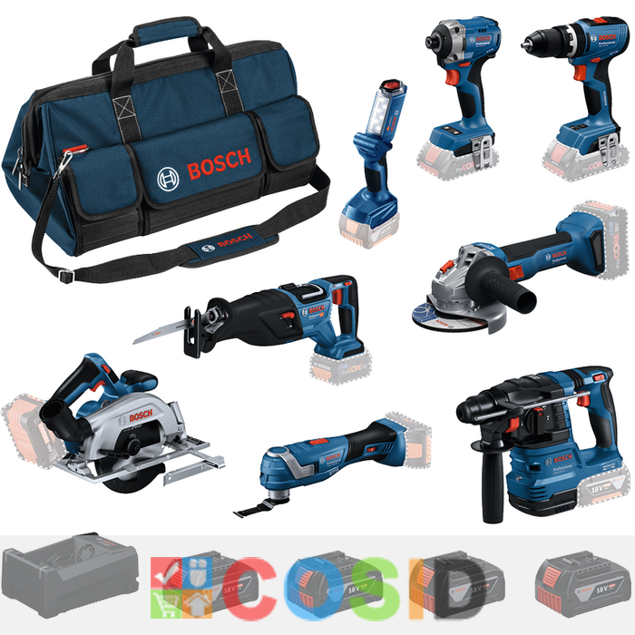 BOSCH Professional Kit 8 scule 18V GBH 18V-22 + GLI 18V-300 + GOP 18V-34 + GSB 18V-65 + GWS 18V-8 + GDR 18V-215 + GKS 18V-57-2 + GSA 18V-28 + 4x GBA 18V 5.0Ah + GAL + Geanta textil
