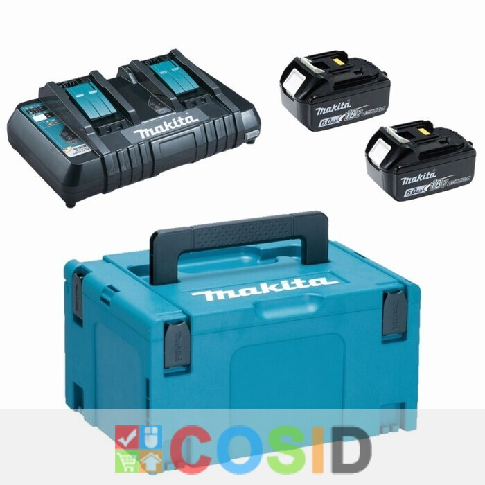 MAKITA Kit 2 acumulatori Li-Ion, 18V LXT, 6Ah (MAKPAC3 + BL1860Bx2 + DC18RD)