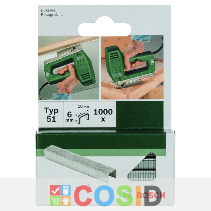 BOSCH KLAMMER TYPE 51 10X1X6MM 1000 STK GL