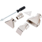 KHG240 2000W motor for use in a variety of settings such as soldering, welding PVC, shaping, drying, shrink-fitting, stripping paint, removing sticky labels etc. Adjustable between 50-650°C, temperature and air flow controls allow for precise settings to be achieved with LCD display to show temperature and air flow settings. Features and Benefits • Ceramic heating element increases longevity and provides optimal quality • Thermal cut-out protection prevents the tool from damage due to overheating • Memory storage of last used settings for quick start-up • Can be used free-standing on a work surface facing upwards for hands-free use Kit Includes • 4 detachable nozzles, paint scraper and moulded carry case