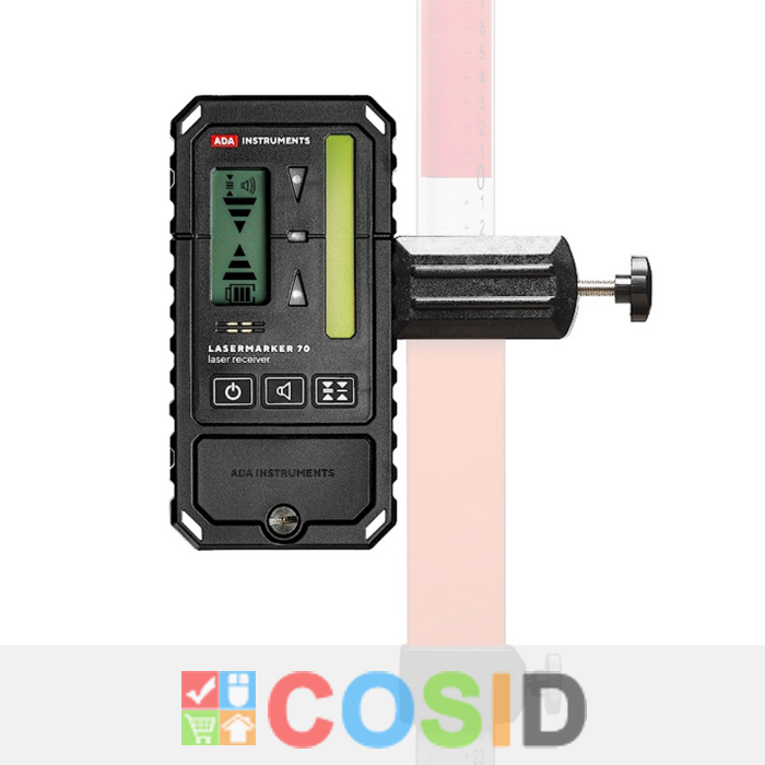 Receptorul de fascicul laser ADA LASERMARKER 70 este compatibil cu nivelele INSTRUMENTS și INSTRUMAX și recunoaște atât liniile roșii, cât și cele verzi proiectate. Aparatul este echipat cu un display LCD pentru citirea ușoară a informațiilor și este montat pe o șină sau suprafață metalică.