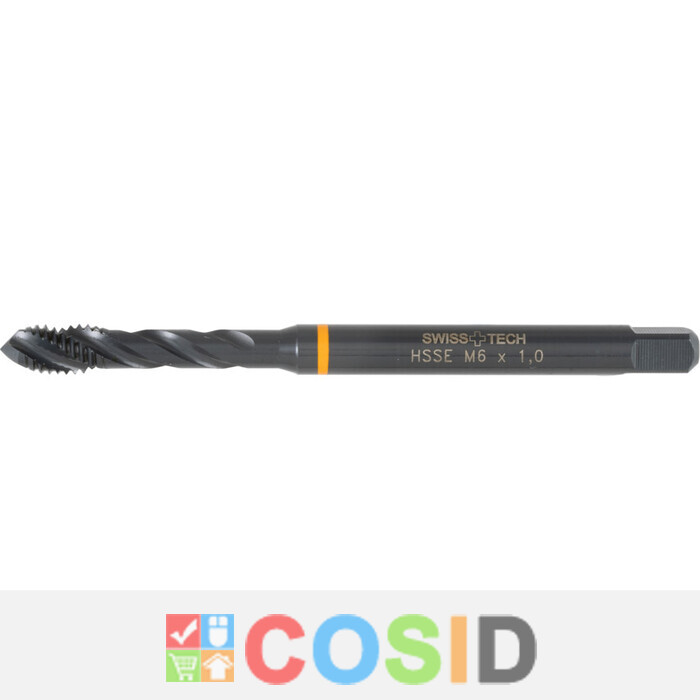Canal Spiralat - Finisaj cu Nitrura si Oxidat HSS-PM Pentru gauri oarbe. Varf conic conform DIN forma C. Acest tarod beneficiaza de un varf special sanfrenat de (3 x P). Toleranta de filetare: canal spiralat conform 6H. ISO Metric - Pas Mare Unghi arc de 40°. Adancime de filetare 2,5 x D.Grupa de produs: 185