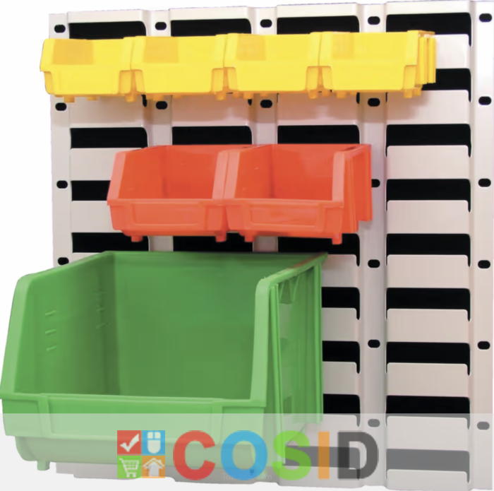 Panouri din otel preset cu decupaje dese louvre care accepta cele mai multe cutii de depozitare din plastic. Numarul mare de decupaje louvre permite agatarea cutiilor de depozitare intr-o configuratie de densitate mare si orice combinatie dorita de dimensiuni/culori. Marginea indoita a cutiilor de depozitare se fixeaza solid cu taietura louvre. Desenul modular permite scoaterea si reatasarea cutiilor de deposit fara probleme atunci cand este nevoie.Grupa de produs: 404