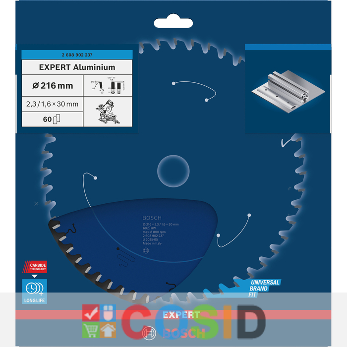 BOSCH Pânză de fierăstrău circular EXPERT Aluminium, 216 x 2,3/1,6 x 30 mm, T60