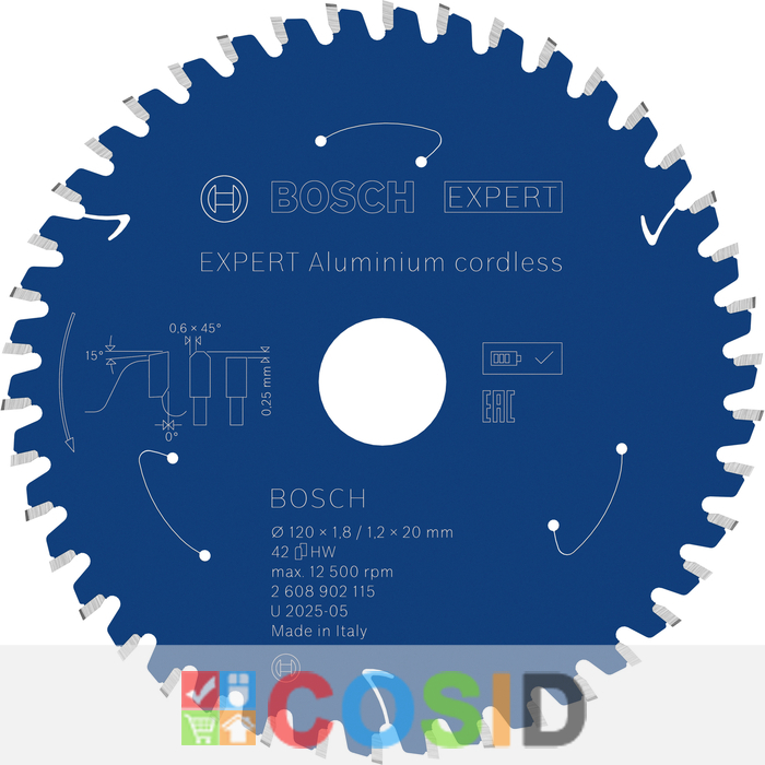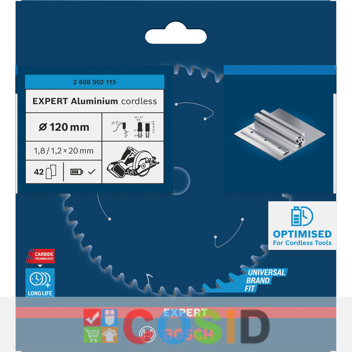 BOSCH Pânză de fierăstrău circular EXPERT Aluminium cordless, 120 x 1,8/1,2 x 20 mm, T42