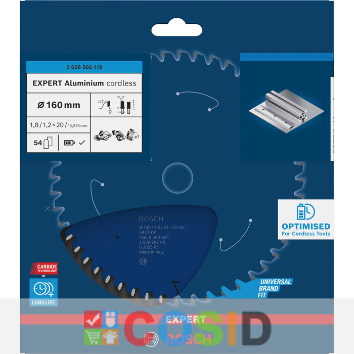 BOSCH Pânză de fierăstrău circular EXPERT Aluminium cordless, 160 x 1,8/1,2 x 20 mm, T54