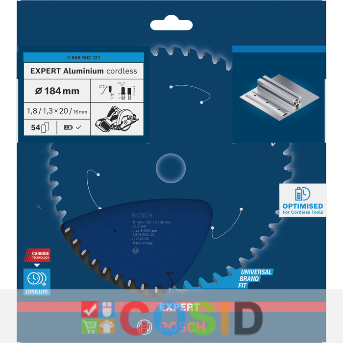 BOSCH Pânză de fierăstrău circular EXPERT Aluminium cordless, 184 x 1,8/1,3 x 20 mm, T54