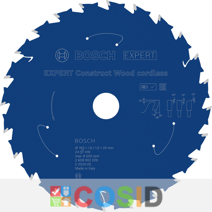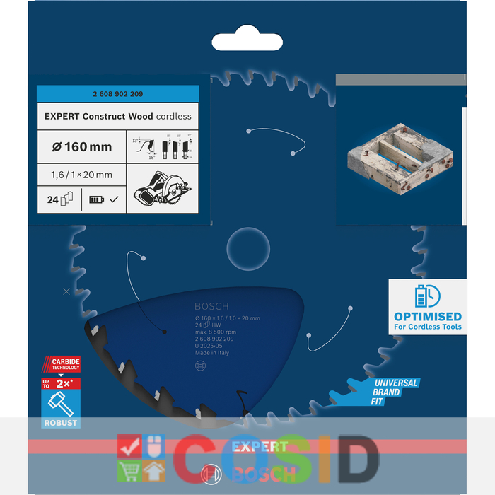 BOSCH Pânză de fierăstrău circular EXPERT Construct Wood cordless, 160 x 1,6/1 x 20 mm, T24