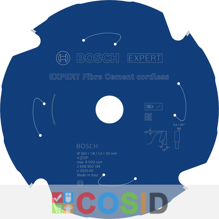 BOSCH Pânză de fierăstrău circular EXPERT Fibre Cement cordless, 160 x 1,8/1,2 x 20 mm, T4