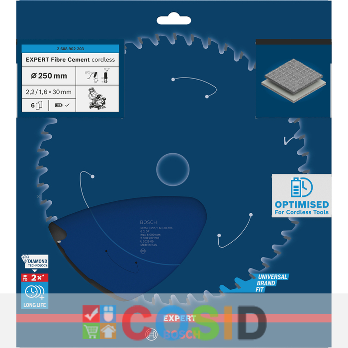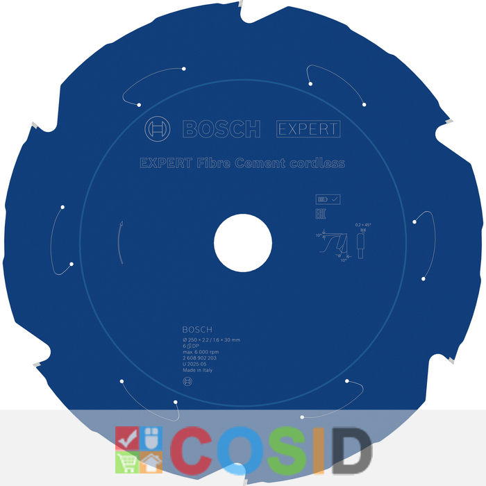BOSCH Pânză de fierăstrău circular EXPERT Fibre Cement cordless, 250 x 2,2/1,6 x 30 mm, T6