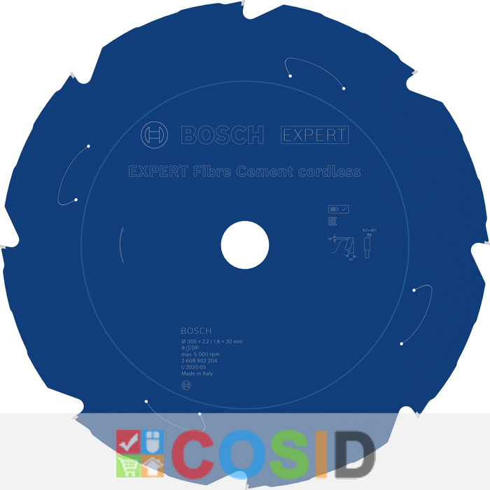 BOSCH Pânză de fierăstrău circular EXPERT Fibre Cement cordless, 305 x 2,2/1,6 x 30 mm, T8