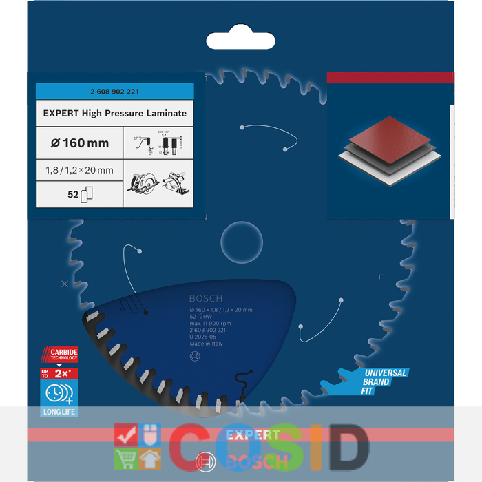 BOSCH Pânză de fierăstrău circular EXPERT High Pressure Laminate, 160 x 1,8/1,2 x 20 mm, T52