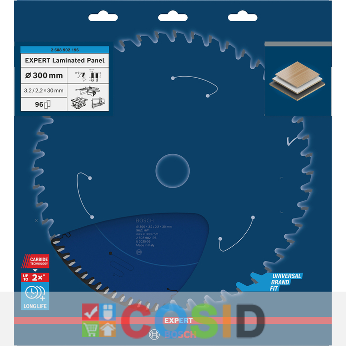 BOSCH Pânză de fierăstrău circular EXPERT Laminated Panel, 300 x 3,2/2,2 x 30 mm, T96