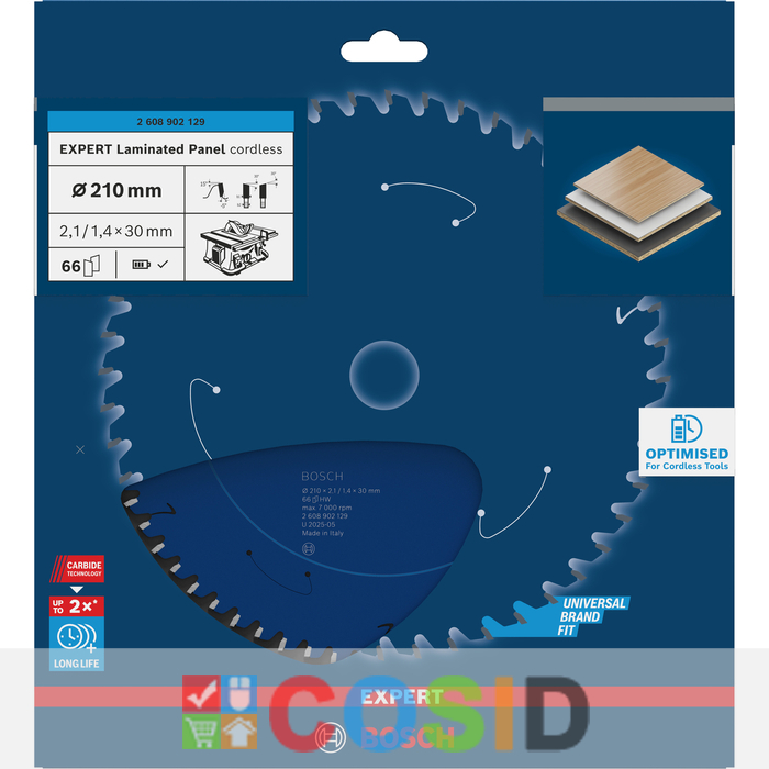 BOSCH Pânză de fierăstrău circular EXPERT Laminated Panel cordless, 210 x 2,1/1,4 x 30 mm, T66