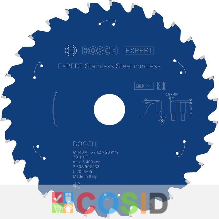 BOSCH Pânză de fierăstrău circular EXPERT Stainless Steel cordless, 140 x 1,5/1,2 x 20 mm, T30