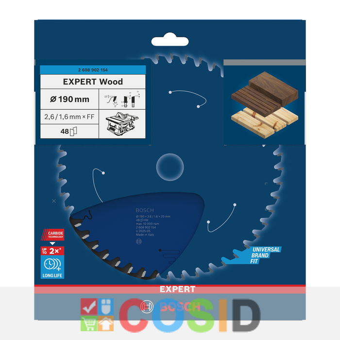 BOSCH Pânză de fierăstrău circular EXPERT Wood, 190 x 2,6/1,6 x 30 mm, T48