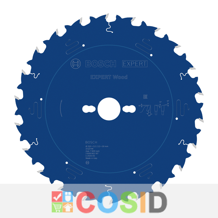 BOSCH Pânză de fierăstrău circular EXPERT Wood, 250 x 3,2/2,2 x 30 mm, T22