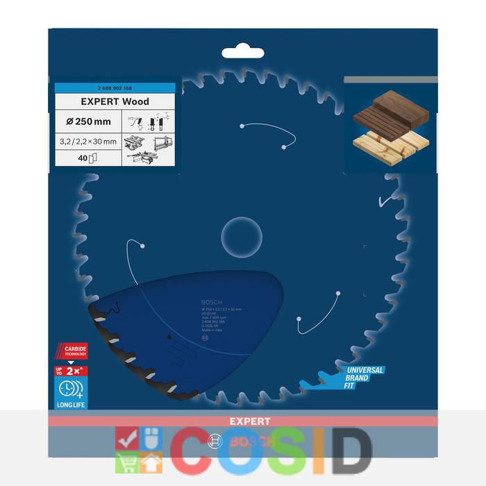 BOSCH Pânză de fierăstrău circular EXPERT Wood, 250 x 3,2/2,2 x 30 mm, T40