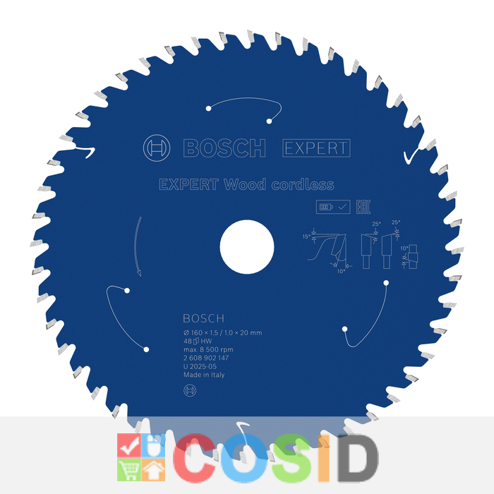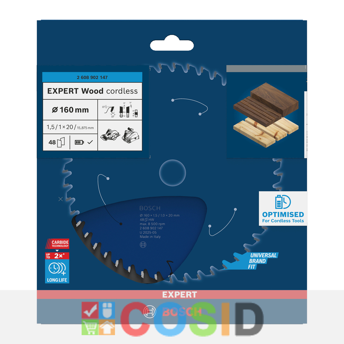 BOSCH Pânză de fierăstrău circular EXPERT Wood cordless, 160 x 1,5/1 x 20 mm, T48