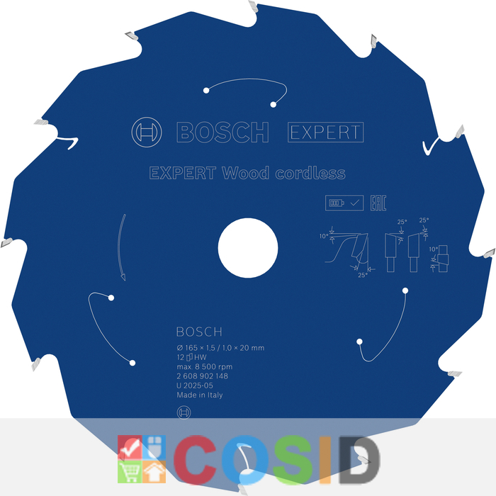 BOSCH Pânză de fierăstrău circular EXPERT Wood cordless, 165 x 1,5/1 x 20 mm, T12