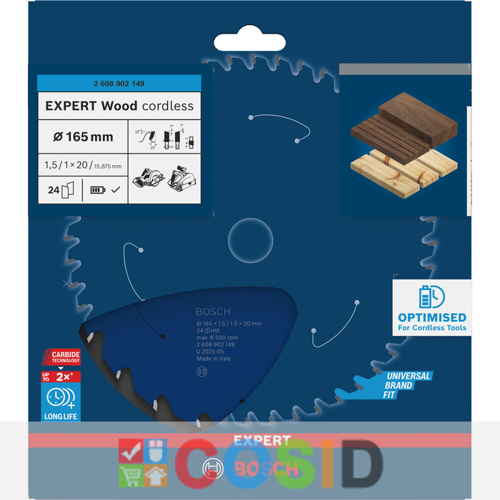 BOSCH Pânză de fierăstrău circular EXPERT Wood cordless, 165 x 1,5/1 x 20 mm, T24
