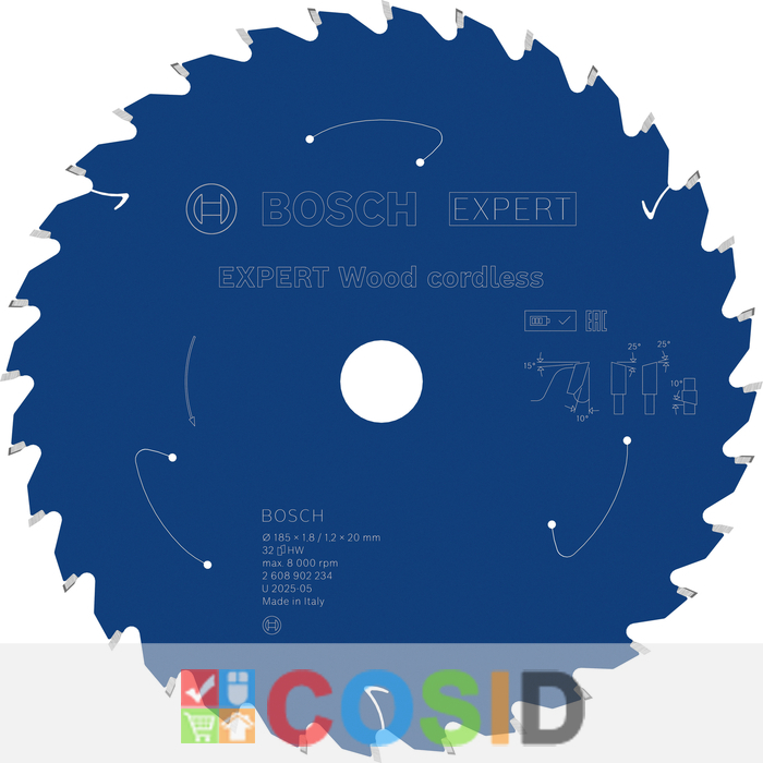 BOSCH Pânză de fierăstrău circular EXPERT Wood cordless, 185 x 1,8/1,2 x 20 mm, T32
