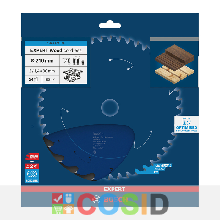 BOSCH Pânză de fierăstrău circular EXPERT Wood cordless, 210 x 2/1,4 x 30 mm, T24