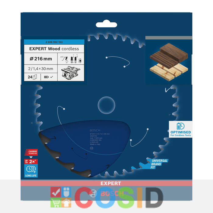 BOSCH Pânză de fierăstrău circular EXPERT Wood cordless, 216 x 2/1,4 x 30 mm, T24