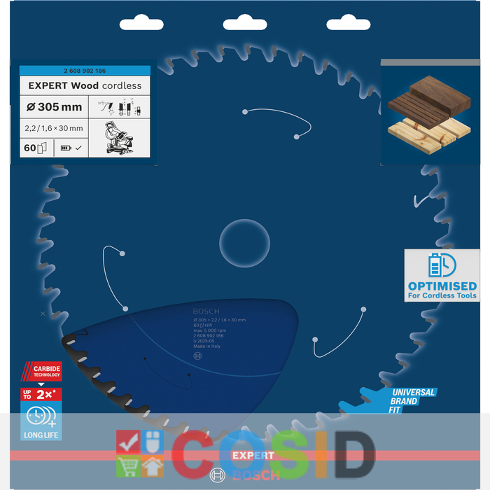 BOSCH Pânză de fierăstrău circular EXPERT Wood cordless, 305 x 2,2/1,6 x 30 mm, T60