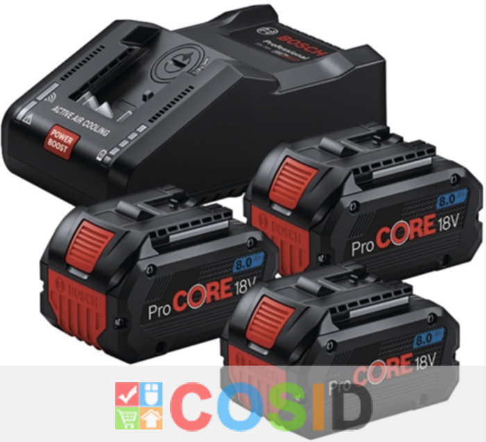BOSCH PC18V8 + GAL18V-160 Set 3 acumulatori Li-Ion, 18V, 8Ah + Incarcator Power Boost Li-Ion de 16Ah, 18V