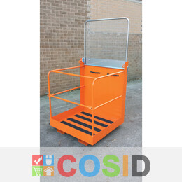 Platforma neintegrata de acces echipata cu aparatoare de spate plianta. Conform HSE Guidance Note PM28 (3rd Edition December 2005). Un mod economic si sigur de a efectua reparatii ocazionale. Ridica 200kg sau un om cu unelte. Cu un punct de ancorare gradat pentru ham in cusca de protecti Se potriveste cu majoritatea carucioarelor de ridicare. Din otel, cu suprafata galben de siguranta. Specificatii: 800 x 800 mm cos. Aparatoare spate plianta. Piedica pentru ridicator bara de protectie in fata. Punct fix de ancorare. Greutate: 68kg. Dimensiunea furca: 170 x 70 mm.Grupa de produs: 985