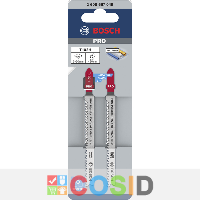 BOSCH PRO Plastics PVC clean and PMMA T102H Lamă de ferăstrău, 100 mm, 2 buc.