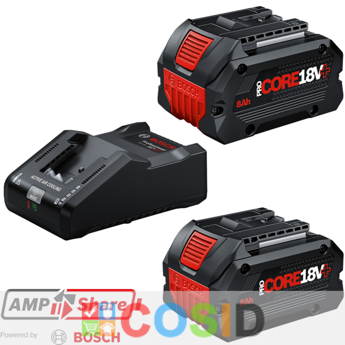 BOSCH ProCORE 18V + GAL18V-160C Set 2 acumulatori Li-Ion, 18V, 8Ah + Incarcator Power Boost de 16Ah