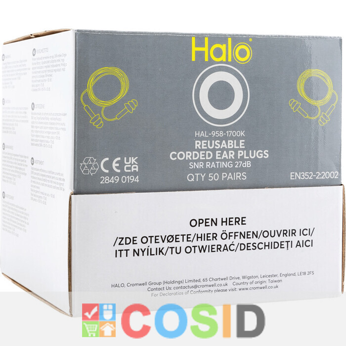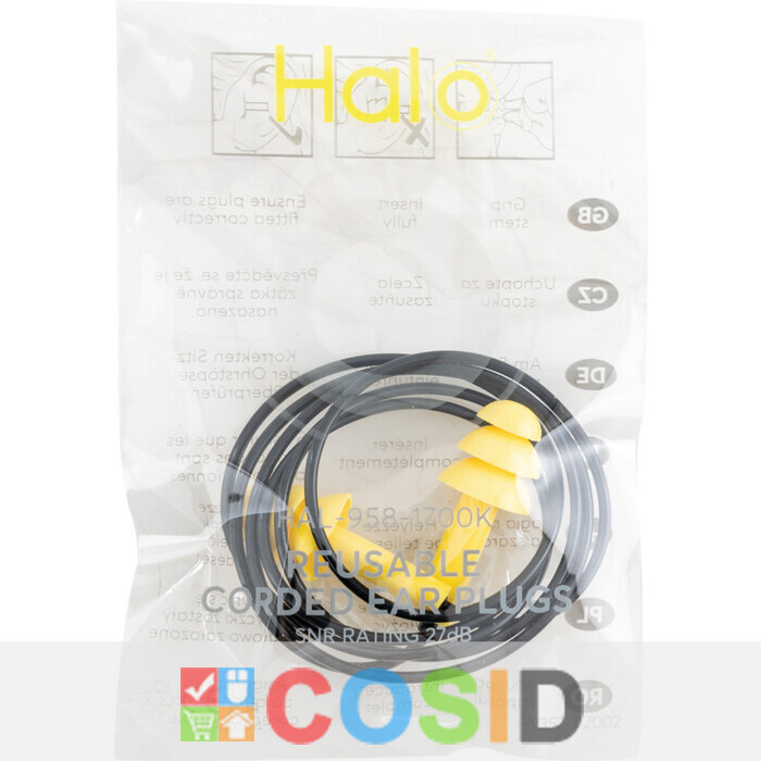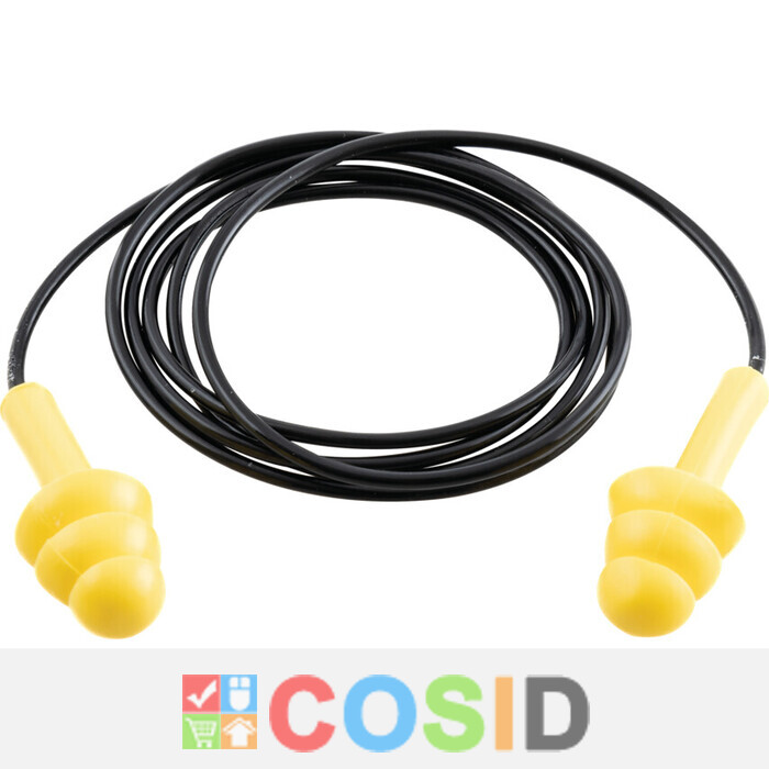 CROMWELL REUSABLE CORDED EARPLUGS YELLOWON BLACK CORD 27dB (BX-50PR)