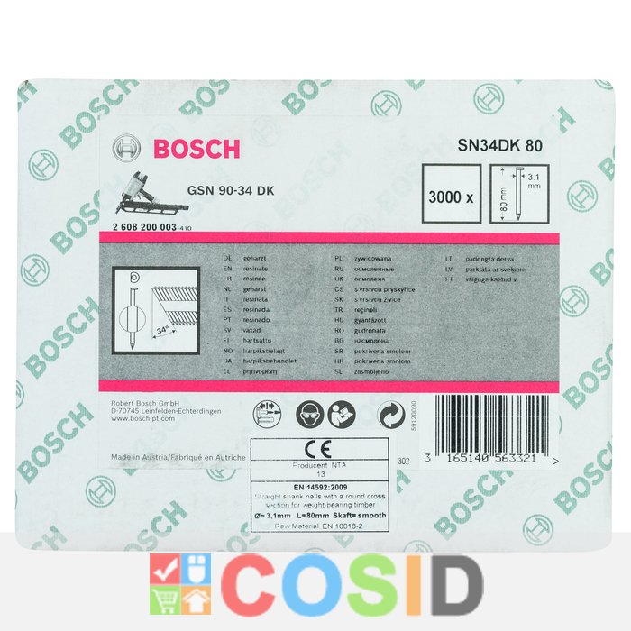 BOSCH SØM 34GR 3,1X80MM BL 3000 STK