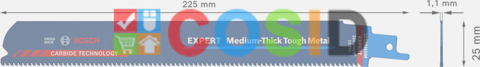 BOSCH S1155HHM Set 10 panze EXPERT Medium-Thick Tough Metal (metal dur/INOX) 225 mm