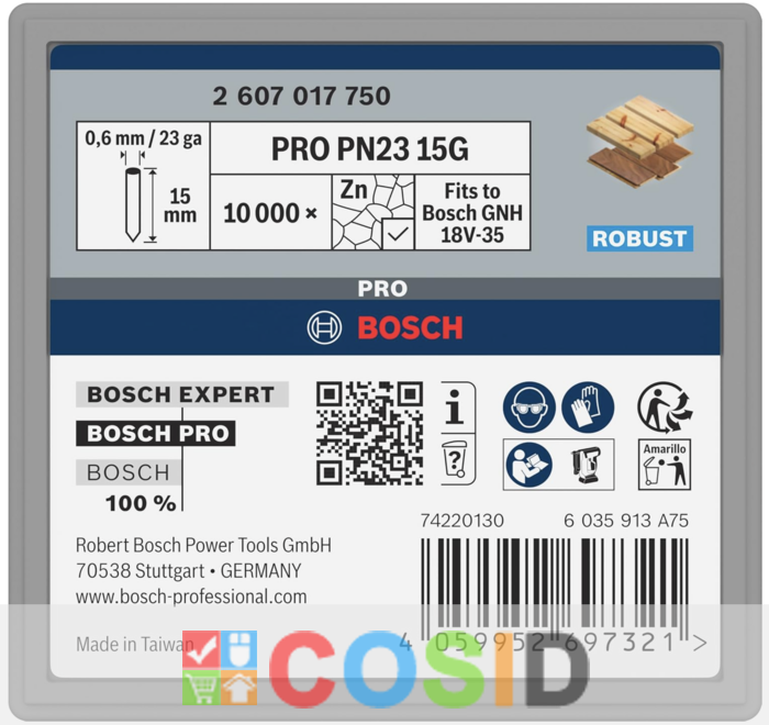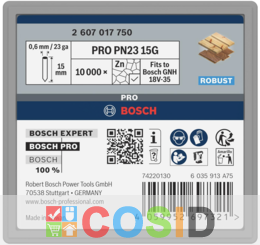BOSCH Set 10000 cuie galvanizate, fara cap, PN23G, 0.65/23 g, 15 mm pentru GNH 18V-35