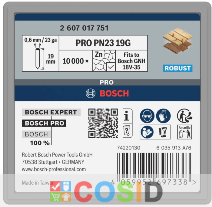 BOSCH Set 10000 cuie galvanizate, fara cap, PN23G, 0.65/23 g, 19 mm pentru GNH 18V-35
