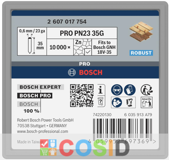 BOSCH Set 10000 cuie galvanizate, fara cap, PN23G, 0.65/23 g, 35 mm pentru GNH 18V-35