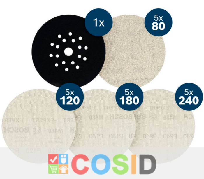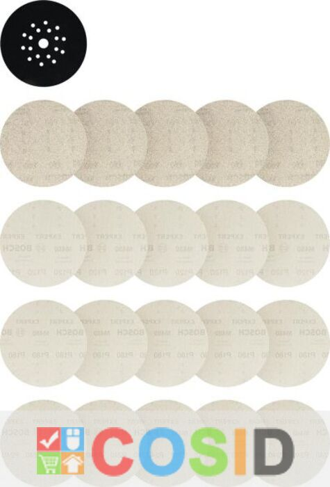 BOSCH Set 20 foi EXPERT slefuire tavan/pereti (slefuire fara praf) 225 mm, mixte R80/120/180/240 + Piesa intermediara pentru protectie talpa