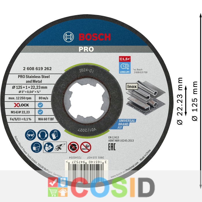 BOSCH Set 25 discuri taiere inox 125x1 mm cu X-LOCK