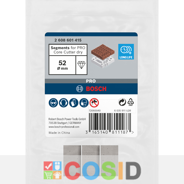 BOSCH Set 3 segmente pentru carote diamantate Ø 52, 1 1/4" UNC, 11.5 mm