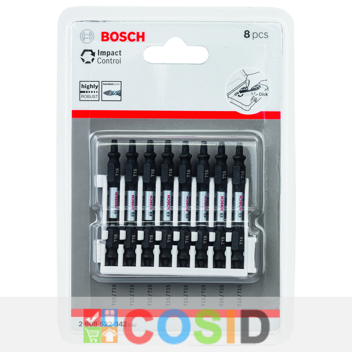 BOSCH Set 8 biti duble Impact Control 65 mm, T15-T15