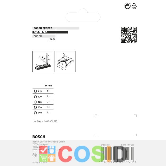 BOSCH Set 8 biti Impact Control 50 mm, T15-T40