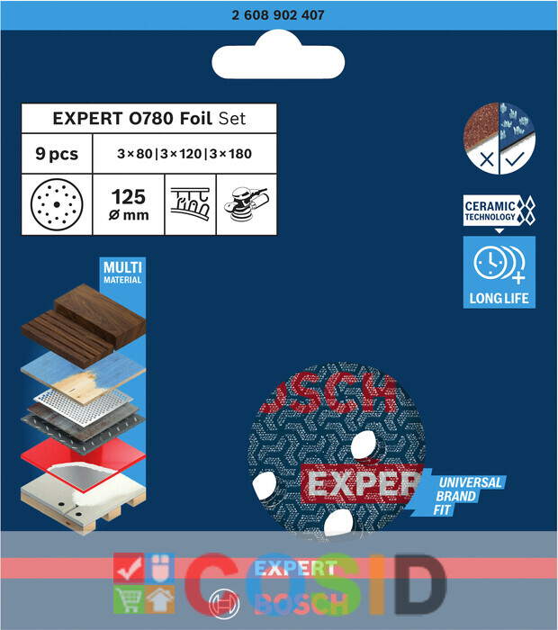 BOSCH Set 9 foi EXPERT O780 pe suport de folie, 125 mm, Mixt