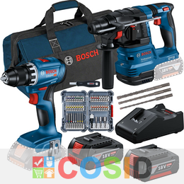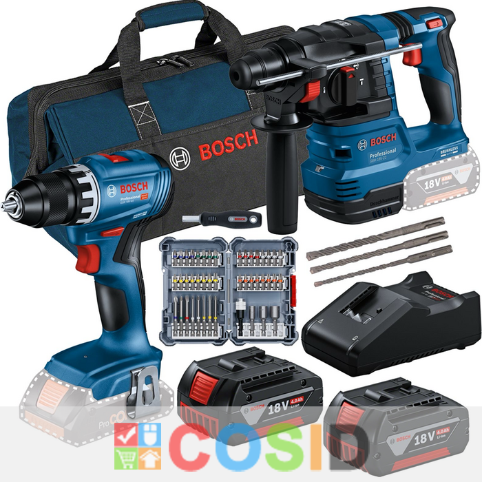 BOSCH Professional SET COMBI GSR 18V-45 + GBH 18V-22 + set de 45 de capete de şurubelniţă + set de 3 burghie pentru ciocan rotopercutor SDS plus-5 + 2 x GBA 18V 4.0Ah + GAL 18V-40 toate în cutie