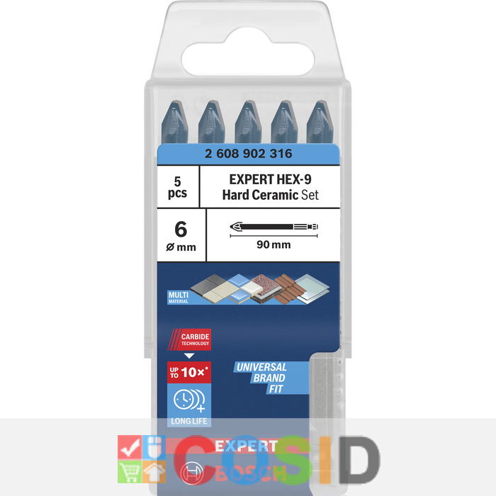 BOSCH Set de burghie EXPERT HEX-9 Hard Ceramic, 6 x 90 mm, 5 buc.